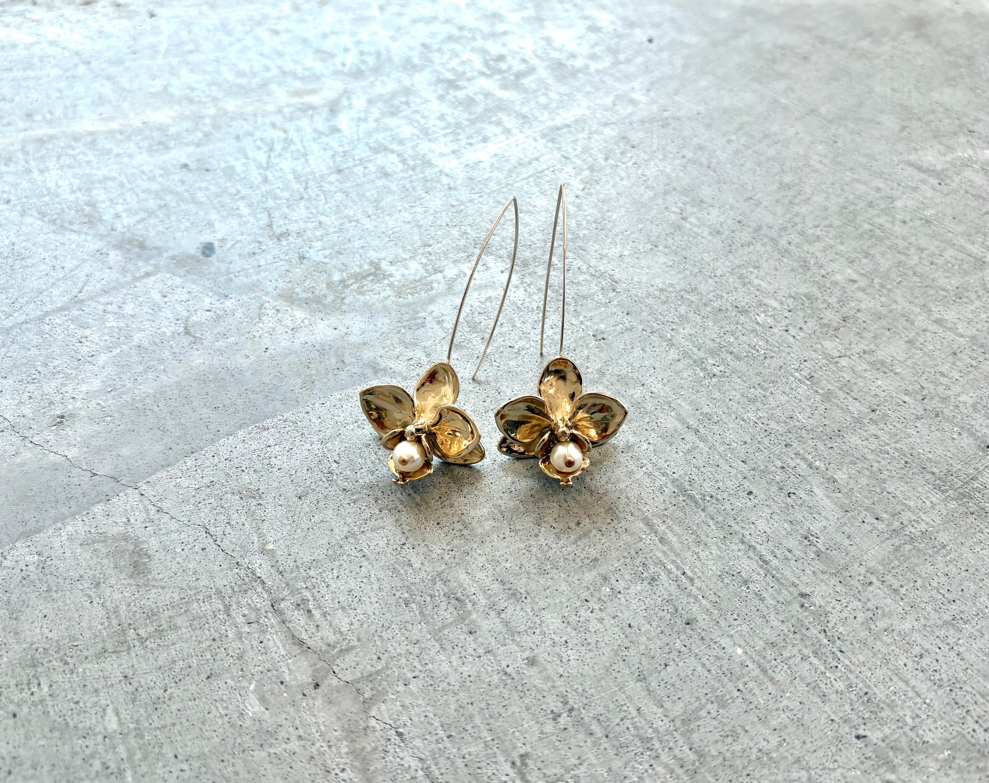 Yellow or white brass with sterling silver wire, lab grown gems or freshwater pearls